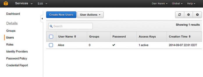 然后,你就可以创建一个新的IAM用户并管理他们的安全凭证,比如访问密钥之类的东西。