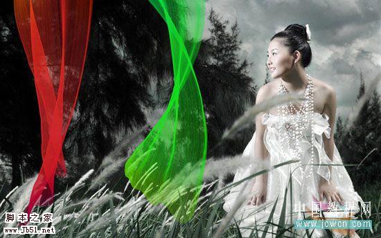 好了,现在我们打开一张图片,新建一个图层,设置好你想要的前景颜色,在图片中慢慢画吧,画好了我们再进一步调整一下。 6、用画笔画出纱巾。