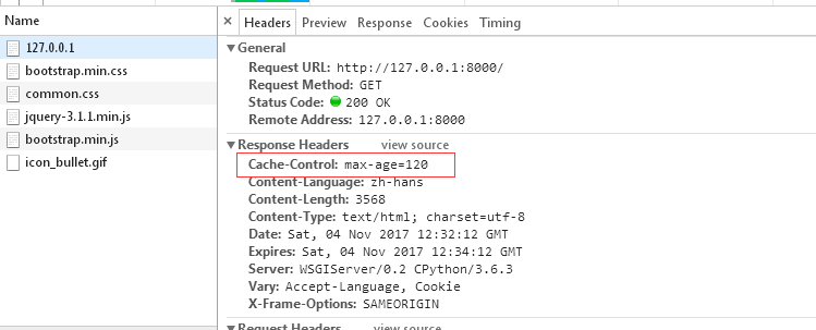可以看到,我在登陆界面做了两分钟的缓存,那么我们来看看我们的文件是否生效呢。