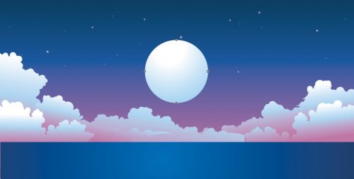 6、绘制月亮。选择工具箱中的“椭圆工具”按住ctrl键画正圆,在单击填充工具里的渐变填充,去除轮廓线效果图如下。