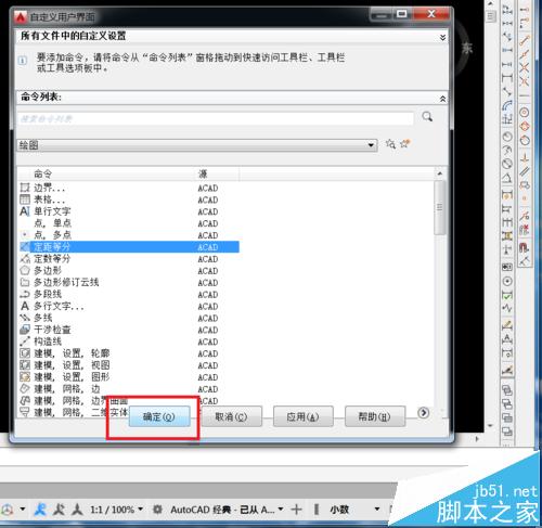 6、移动鼠标到自定义界面对话窗口,点击确定。设置完成。