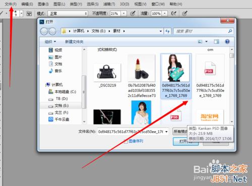 选择“文件”--“打开”命令,在弹出的“打开”对话框中选择一张图片。如下图所示。