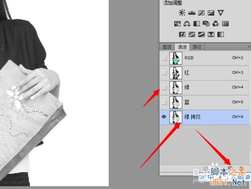 打开 通道面板,选择比较清唽的“绿”拖至通道底部的“创建新通道”。如下图所示。