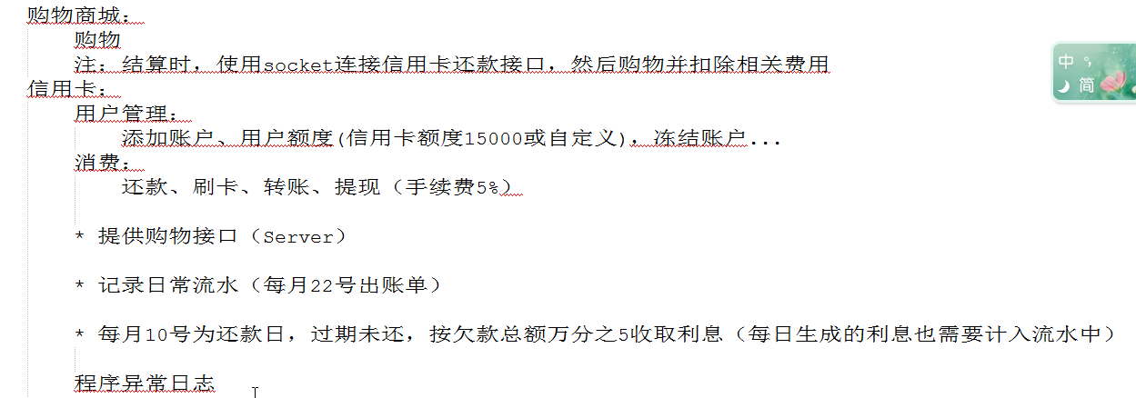 最近一直在做一个有关信用卡系统的项目,所有很少出来给大家打招呼了,今天也该告一段了,本项目是基于python编程语言做的,此信用卡支持购物,转账和存取钱,下面小编把需求及实现思路大概分享一下,仅供参考,如有bug欢迎各位大侠提出,共同学习进步,谢谢!