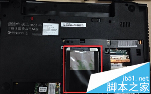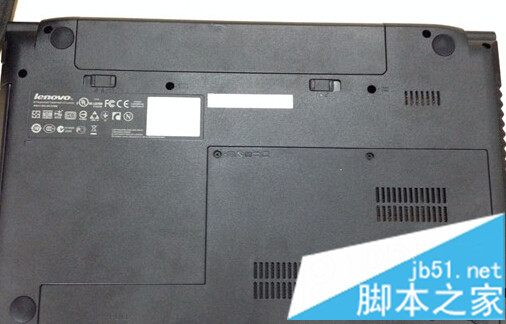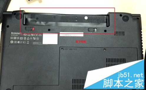 2、在取下后盖前,将笔记本的电池取下,以免安装时由于通电弄坏笔记本硬件。如图所示: