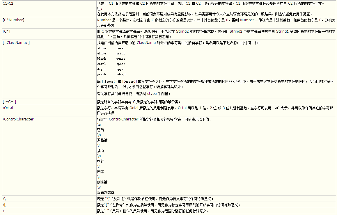 tr中特定控制字符的不同表达方式