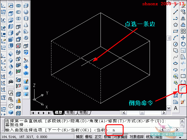 5、输入“N”并回车后,界面中出现了选中顶面的期望结果,这时,不再需要再选择,就直接回车确认。