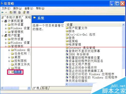 3,然后再打开管理模板的子项,从中找到“系统”这一项,选定。