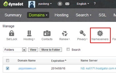 第一步,登陆dynadot账户后台,看到我们的域名列表。