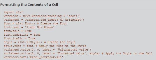 worksheet.write(0, 0, 'Cell Contents', style)