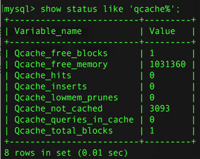 Qcache_not_cached 表示没有进入查询缓存区的查询命令个数