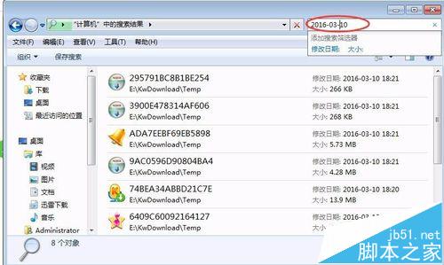 2、在【搜索计算机】的指令框中输入文件储存时间,如:2016-03-10,按回车键进行查找;