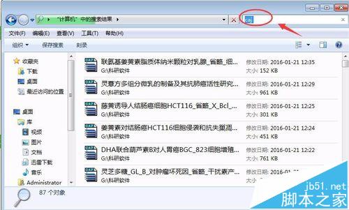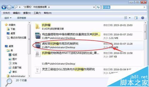 1、在【搜索计算机】的指令框中输入文件储存时间,如:抗肿瘤,按回车键进行查找;