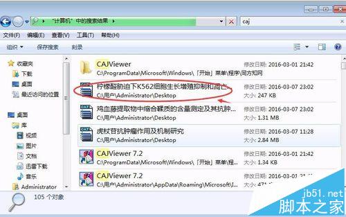 1、在【搜索计算机】的指令框中输入文件储存时间,如:caj,按回车键进行查找;