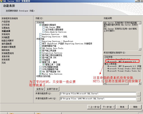 因为我想查看联网跟没有联网SQL2012会不会下载并安装.net2.0 和.net3.5和.net4和SP1补丁包