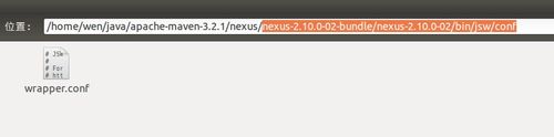 3、解压缩后 进入 nexus-2.10.0-02-bundle/nexus-2.10.0-02/bin/jsw/conf