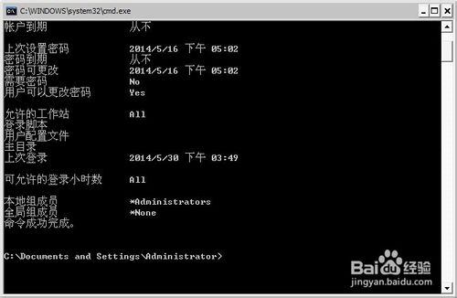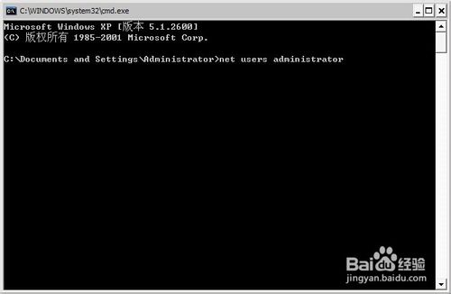 在“cmd.exe”里输入“net users administrator ”(如图所示),注意了,输入完administrator后还要再打两个空格哦!(注:如果设置了密码的管理员不是administrator,就把administrator改成设置了密码的管理员的名称就行了!)