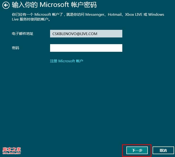 1、在切换账户中,使用 Microsoft 账户登录,输入账户名,点击下一步,