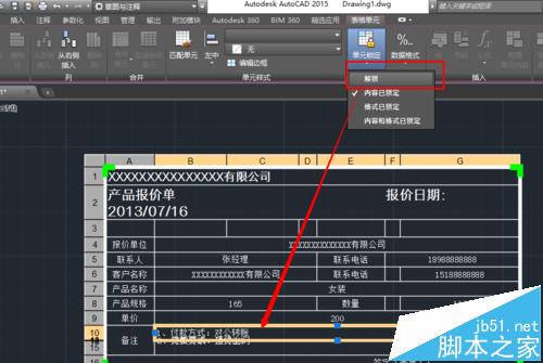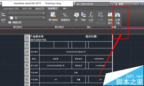 7、如果希望CAD当中的表格内容跟随excel文件的变动而改变可以使用“从源下载”,例如我们在原来的excel表格里面将单价200改为1000,然后回到CAD当中,点击从源下载,就可以看见CAD中的表格,单价也变成了1000.