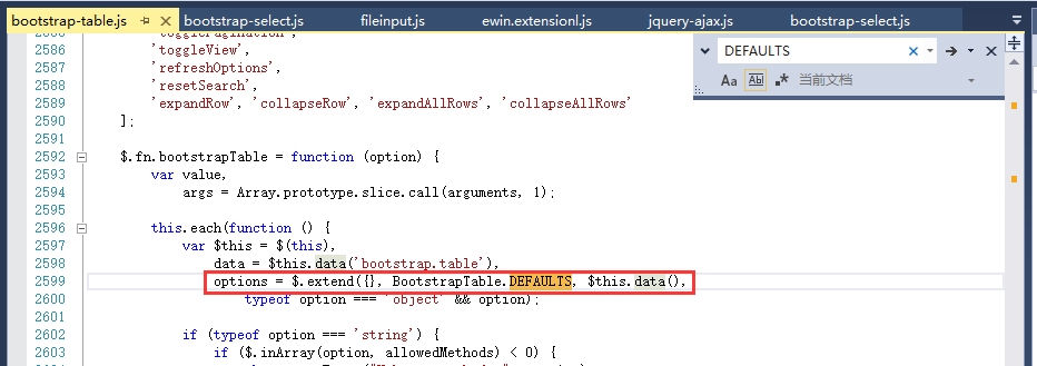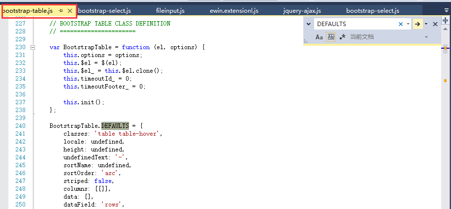 如果用户没有传参,就用默认的参数列表。如果你够细心,你会发现博主之前分享的其他bootstrap组件的js文件里面都有这么一个default参数列表。我们随便找两个: