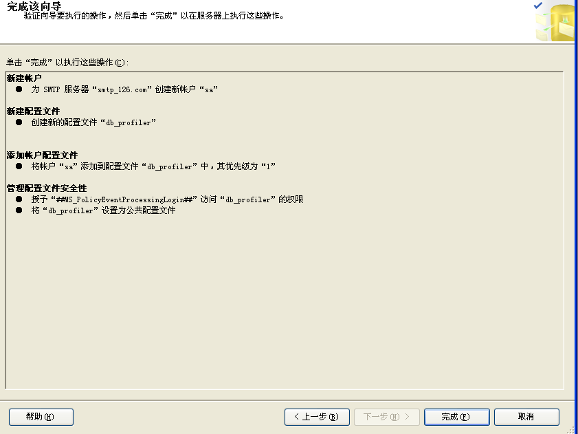 这里的配置文件名,在使用sp_send_dbmail时会作为参数使用