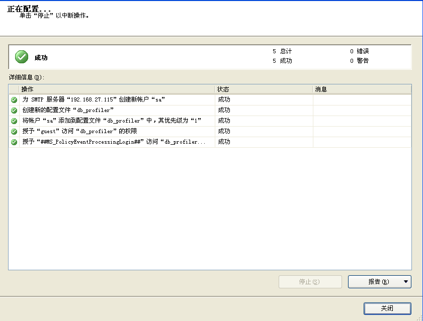 1) 创建配置文件和帐户 (创建一个配置文件和配置数据库邮件向导,用以访问配置数据库邮件管理节点中的数据库邮件节点及其上下文菜单中使用的帐户。)