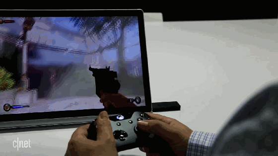 去年的Surface Book由于转轴较薄,无法向联想Yoga那样将屏幕翻转、将底座作为一个支持使用,而今年则可以。将平板部分拆卸下来、翻转放在底座上,就可以轻松变形,用来看视频、玩游戏还是很不错的。