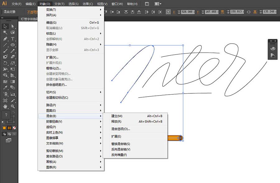 5、选中圆柱路径和做好的基础图形,点击菜单栏的对象-混合-替换混合轴。