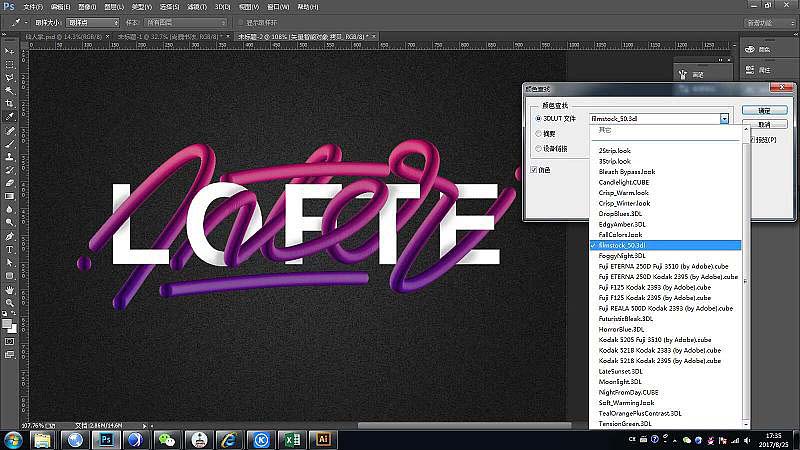 9、在上图层上给予渐变叠加,混合模式选择-叠加-确认 在图像-调整-颜色查找-3DLUT文件中选择(filmstock-50.3dl)。