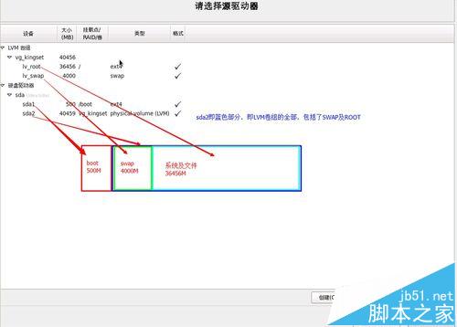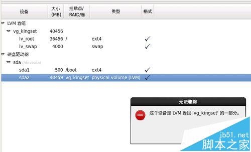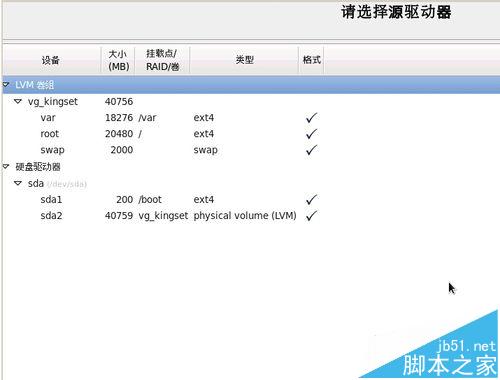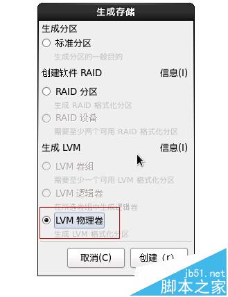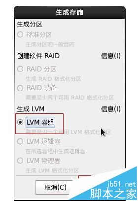 在这里,只有一个选择就是LVM卷组了,呵呵,如图。