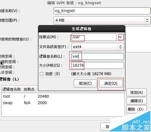 同样方法,添加/Var,如图。空间大小处默认就是剩余的全部空间了,完成后,最后点击二次确定,以退了逻辑分区。