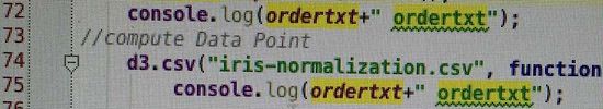 在使用d3.js时,我们经常会使用d3.csv()或者d3.json()函数来从文件中读取出数据,不幸的是,偶尔代码的结果并不是我们预料的那样。习惯了过程式编程的我开始的时候也是这样,最让人头疼的是javascript并不会告诉你问题出在哪里了。我第一次遇到这个问题的时候,找了半天bug,确定代码主体部分没有问题之后,我只能开始使用console.log()将变量一个一个的输出到控制台里。