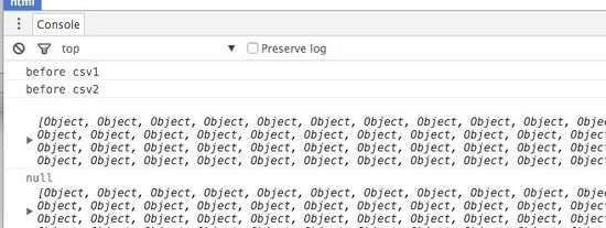 第三种方法是在stack overflow里查到的,试了一下是可以的,他这里用的是d3.text()函数,将文件先load进来,然后再使用d3.csv.parse或者d3.csv.parseRows,这样就会是同步的了。参考文末的Reference 3的实现。