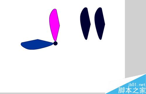 2、选择椭圆,及钢笔工具绘制风车的轴,一个叶片;