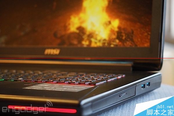 虽然17英寸的笔记本电脑已经没有任何便携性可言了,但是GT72的体积还是比自己的前任要更小更薄,超过4公斤的重量除了沉这个字也没有什么好形容的,不过至少GT72很好地利用了硕大机身所提供的充沛内部空间:左侧四个USB 3.0接口、四个音频相关接口和SD卡读卡器;右侧则还有两个USB接口并且保留了光驱;后方则是常规的电源接口、以太网接口、HDMI输出接口以及两个显示输出接口——以防用户想要来个三屏幕大战。