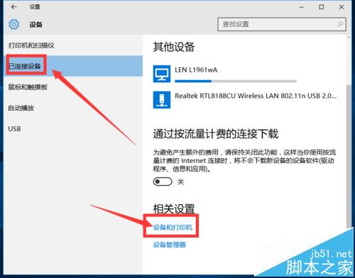 2、已连接设备-相关设备-设备和打印机(win10 以下的不需要这一步)