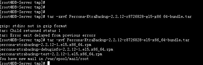 [root@DB-Server tmp]# tar -zxvf Percona-XtraBackup-2.2.12-r8726828-el5-x86_64-bundle.tar