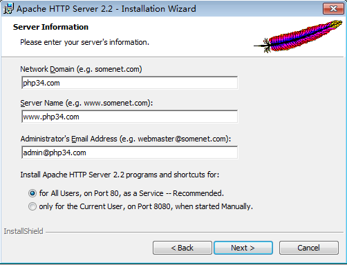 此处是服务器名称的设置,可以随便输入,完成之后可用IP或者localhost来进行访问,