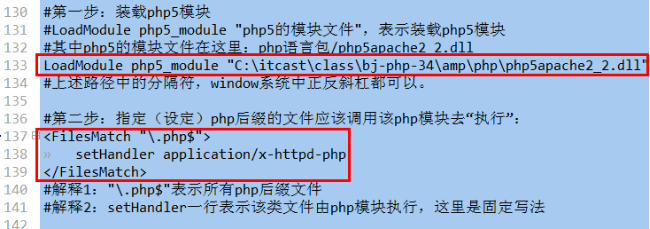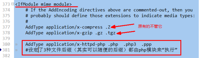 (对比apache打开php模块的语法:
