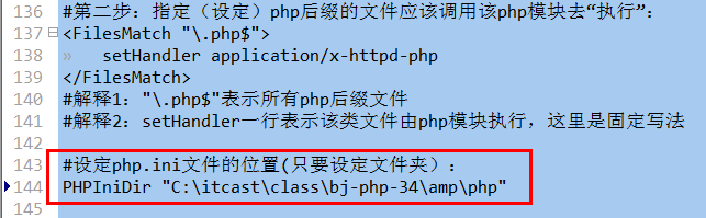 于是,我们可以在apache的配置文件中,来指定php.ini的位置: