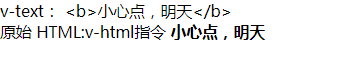 <section id="content"> v-text: <span v-text="tipHtml"></span><br> 原始 HTML:v-html指令 <span v-html="tipHtml"></span> </section>
