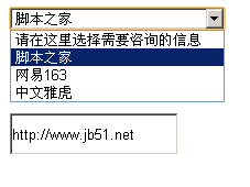 这里演示下拉菜单和文本框构建的介绍栏,将Select框中的值定位到INPUT文本输入框中,是下拉框赋值到文本框的实例,上网时候貌似经常见的功能,只是不知如何形容,或许叫做联动吧。
