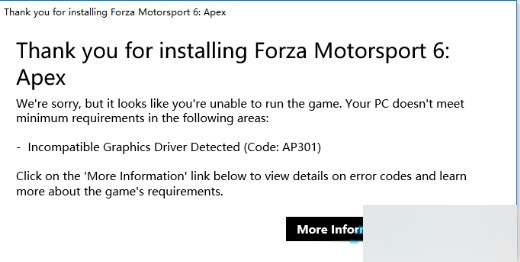 极限竞速6是一款非常热门的游戏,它能够给用户带来十分劲爆的体验。Win10商城迎来XBOXONE独占大作极限竞速6,并免费下载,很多玩家下载后发现打不开游戏,打开后出现提示窗口“Thank you for installing Forza Motorsport 6:Apex”,来看看解决方法吧。