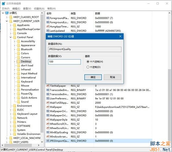 4、双击打开JPEGImportQuality将其数值设置为100,然后点击确定退出。