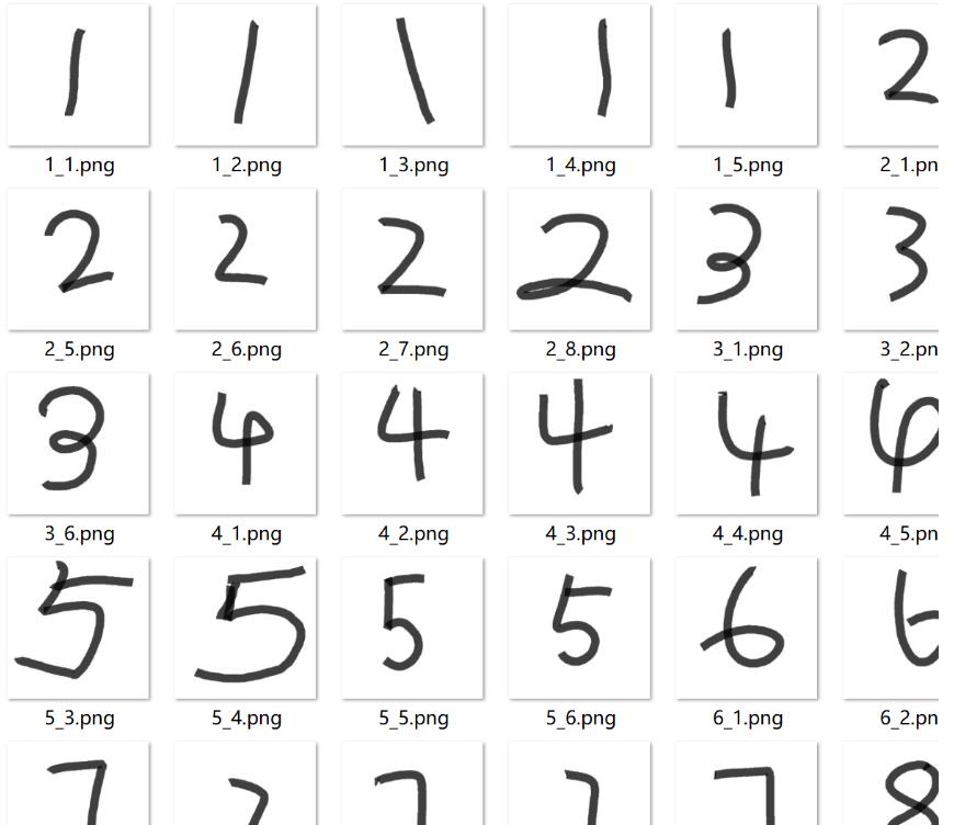 之后我又依次从1-9试了一遍,我自己手写的数字全部识别正确,可以看出准确率还是挺高的。所以做到这一步相当于已经完成度很高了。