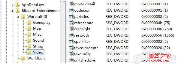 如上图,输入完Regedit后,点击下面的“确定”即可打开注册表编辑器,然后在注册的位置:HKEY_CURRENT_USER\SOFTWARE\BLIZZARDENTERTAINMENT\WARCRAFTIII\VIDEO\下面找到resheight和reswidth两个值,改成你自己电脑分辨率对应的值即可。一般使用桌面属性设置中的分辨率即可,比如笔者笔记本电脑屏幕分辨率为1366*768,那么就修改上述的resheight=768 、reswidth=1366。