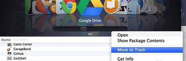 在touch pad上双手指触摸,在弹出菜单上点击“Move to Trash”,“移到废纸篓”。