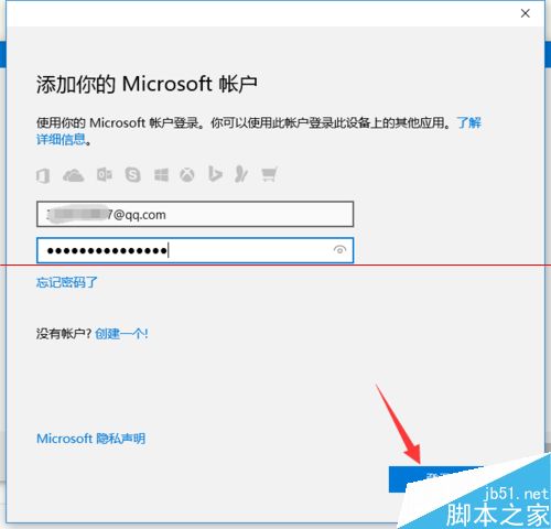 5、从打开的“创建账号”界面中,注册并完成Microsoft账号的登陆操作。