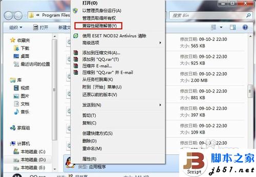 在有问题的软件的图标(注意不是快捷方式)上点击右键,选择“兼容性疑难解答”。