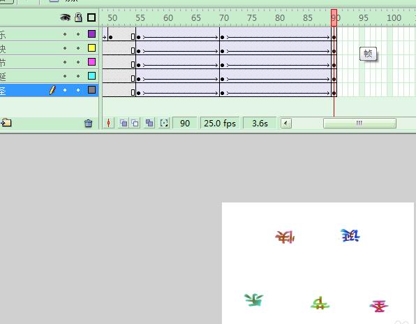 5、调整出事位置,添加关键帧,别且对每个图层的新建帧添加动画补间;